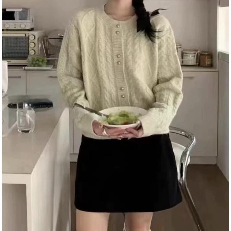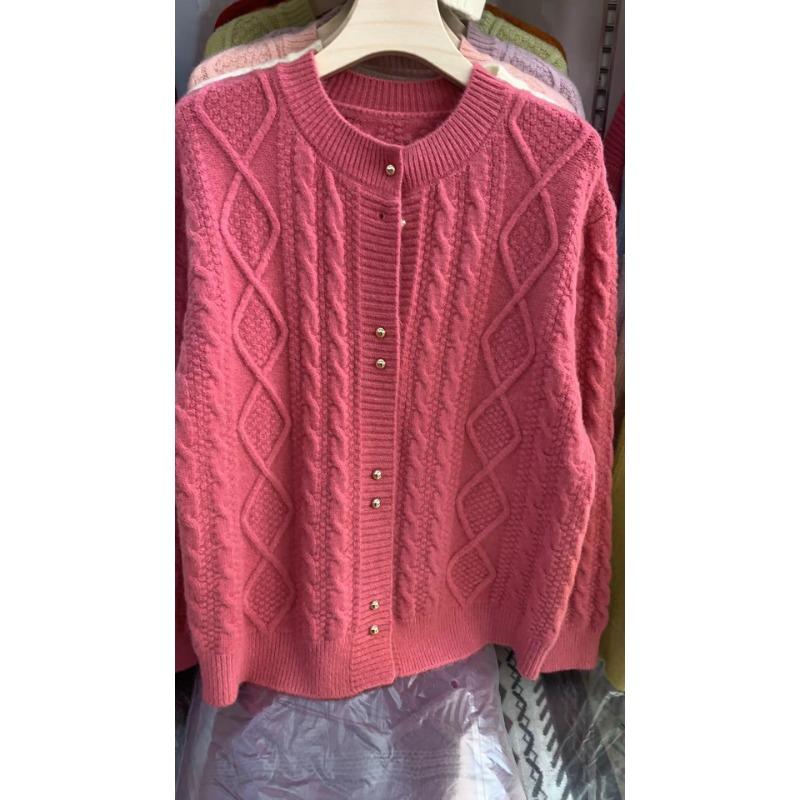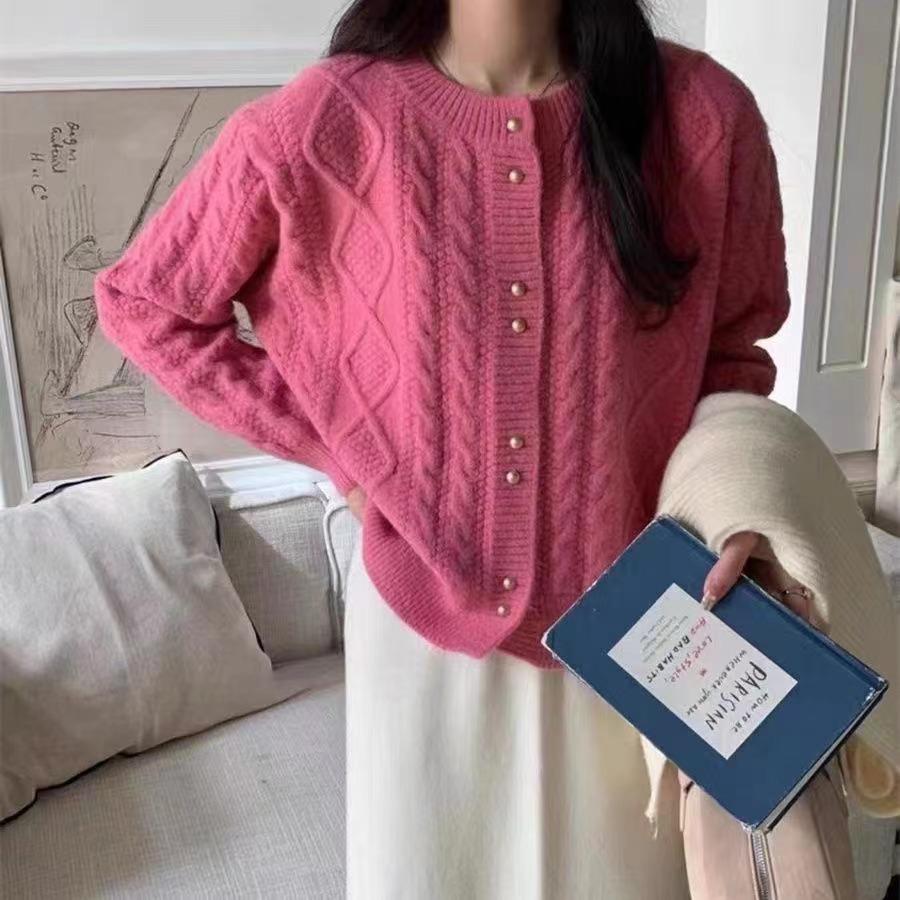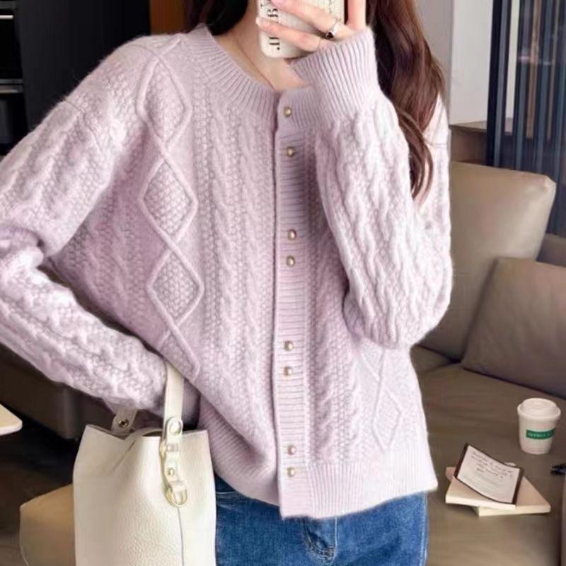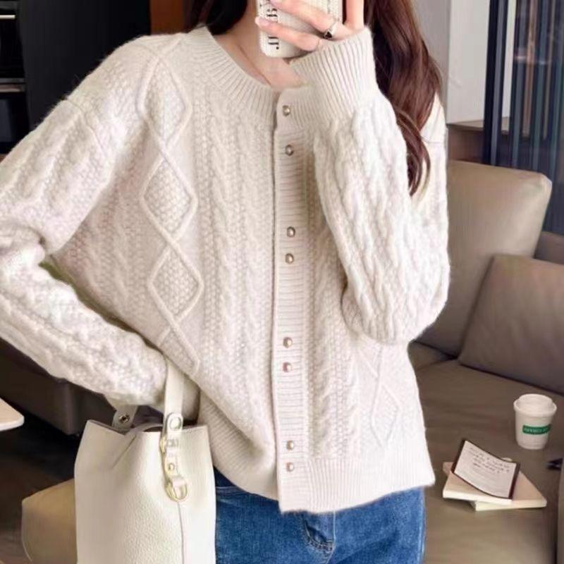 Женский осенне-зимний вязаный кардиган с круглым вырезом и золотыми пуговицами