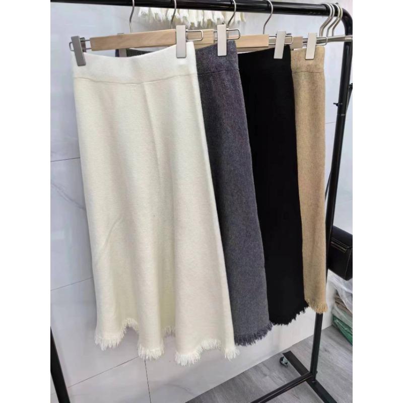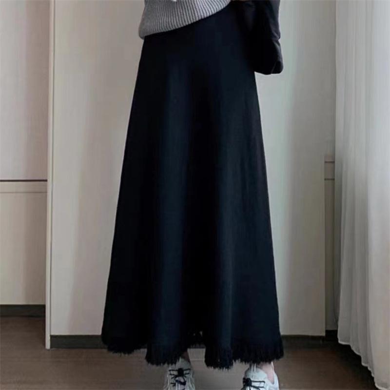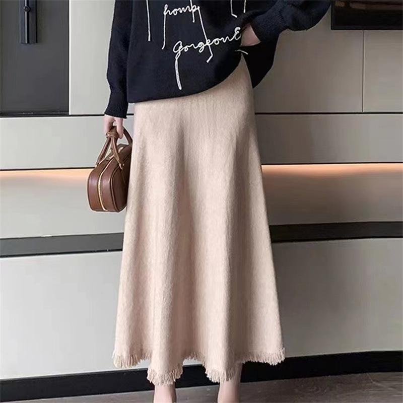 Женская юбка А-силуэта средней длины с бахромой на осень и зиму