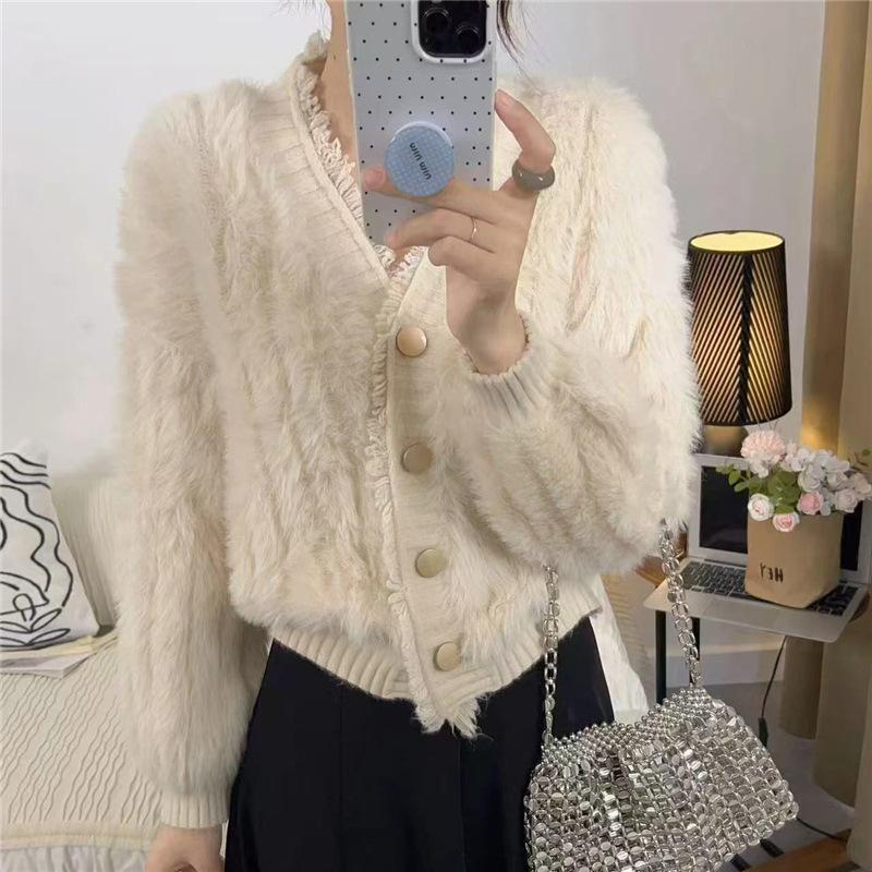 Женский осенне-зимний кардиган с V-образным вырезом и кисточками