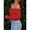 Женский осенне-зимний топ с деревянными ушками сбоку на одно плечо с длинным рукавом и высокой талией