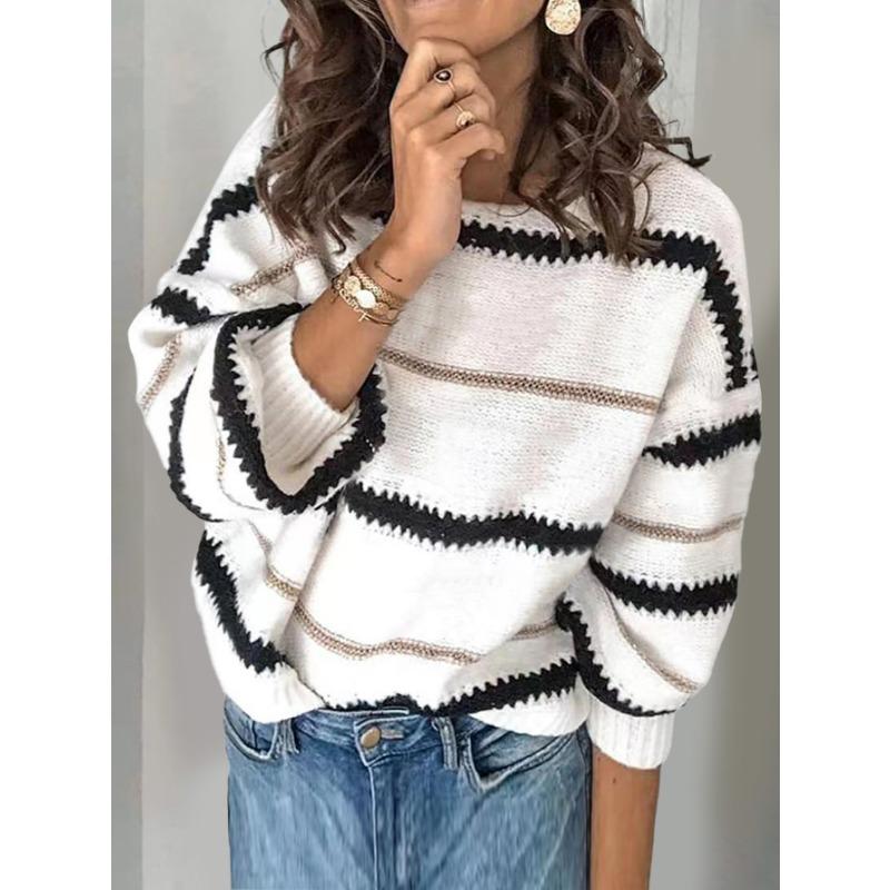 Осеннее движение Женский трикотажный свитер в металлическую полоску, свободный свитер для поездок на работу