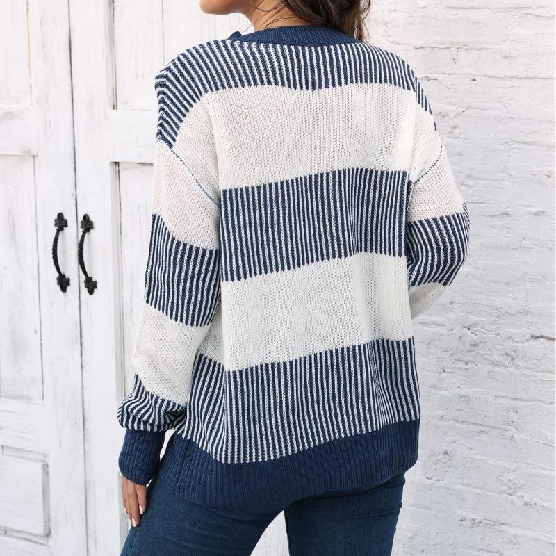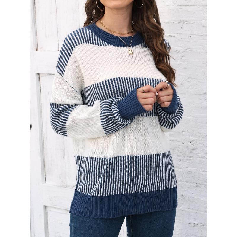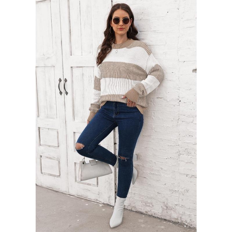 Женский свитер свободного покроя с контрастными полосками в стиле пэчворк на осень/зиму