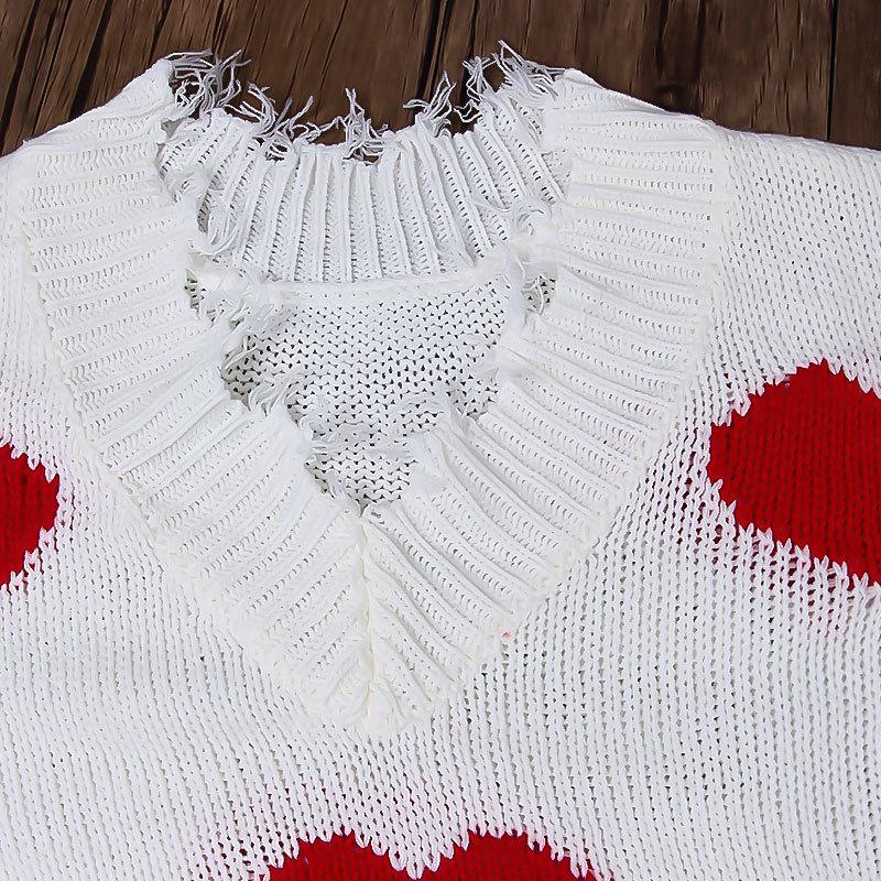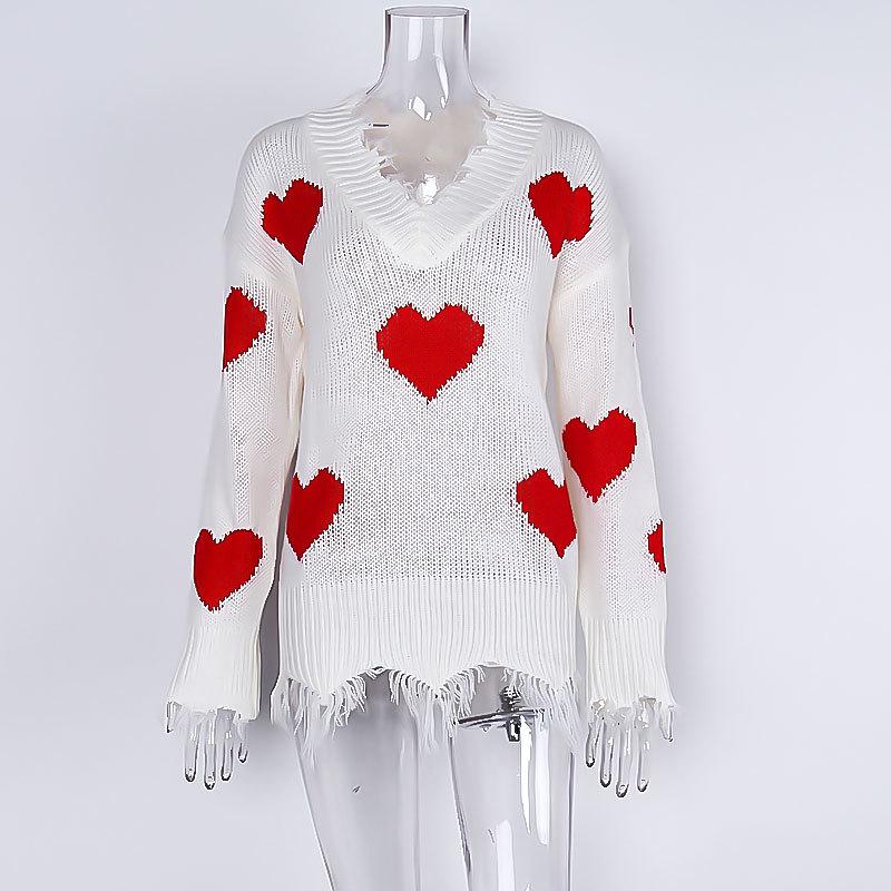 Женский осенне-зимний свободный свитер Love Patchwork с V-образным вырезом