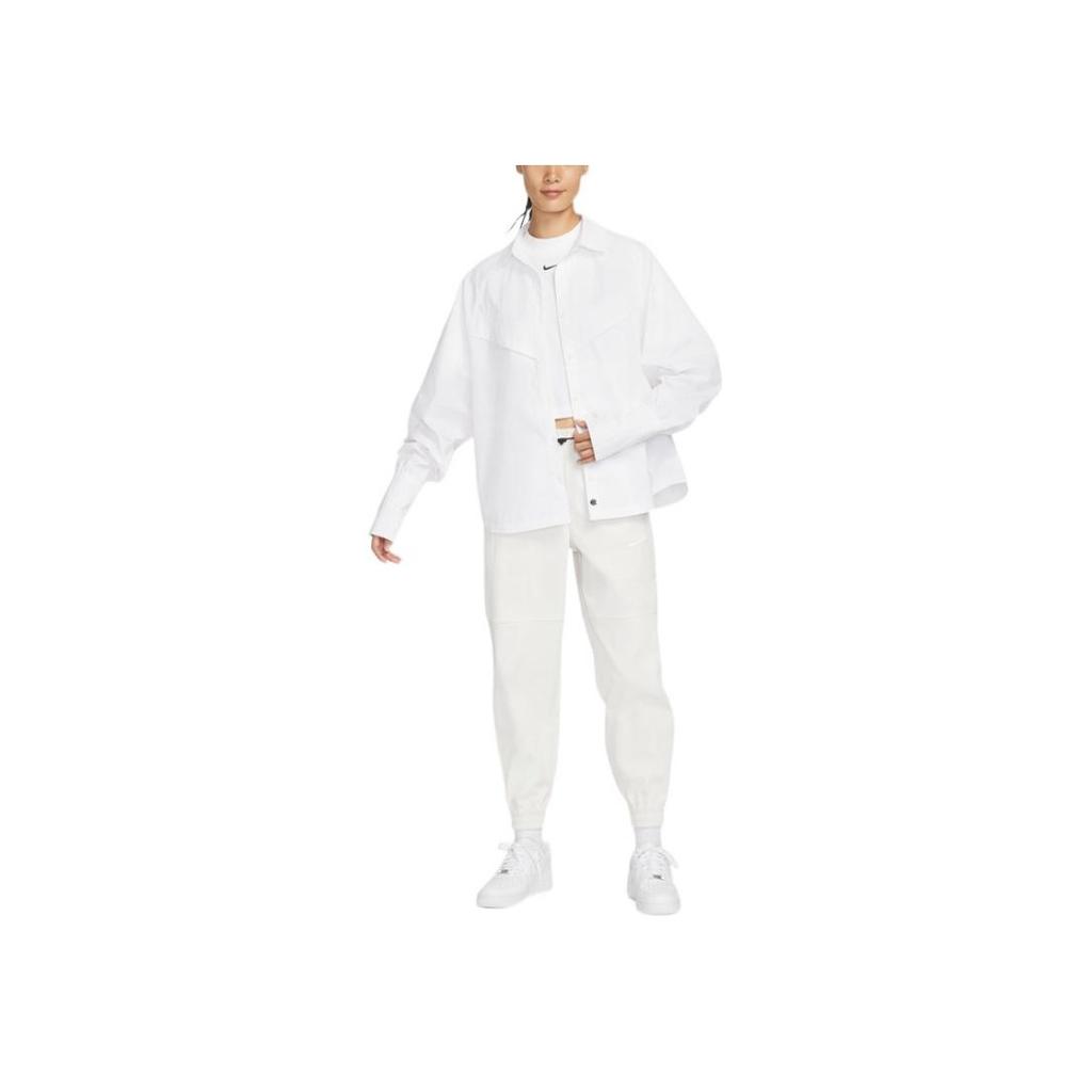 Nike Однобортная дышащая ветрозащитная спортивная повседневная рубашка-поло с длинным рукавом с принтом логотипа, женские рубашки белого цвета DR5997-100