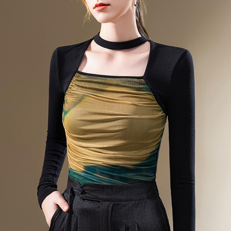 Женский осенне-зимний сексуальный сетчатый топ с висячим вырезом и темперой