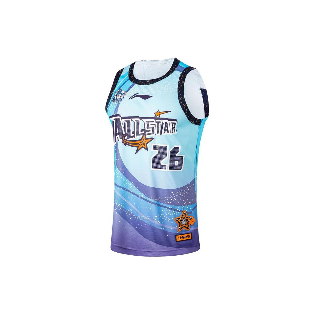 Мужская баскетбольная майка Li Ning Cba Series Zhou Qi с круглым вырезом и буквенным принтом и цифрами, волнисто-синяя AAYU245-1
