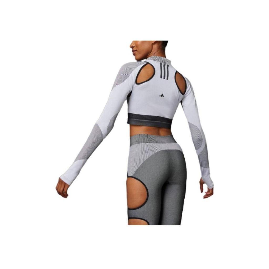 Adidas X Rui Zhou Collaboration FW23 Ажурный дизайн футболка с длинным рукавом женские топы черный белый IB1261