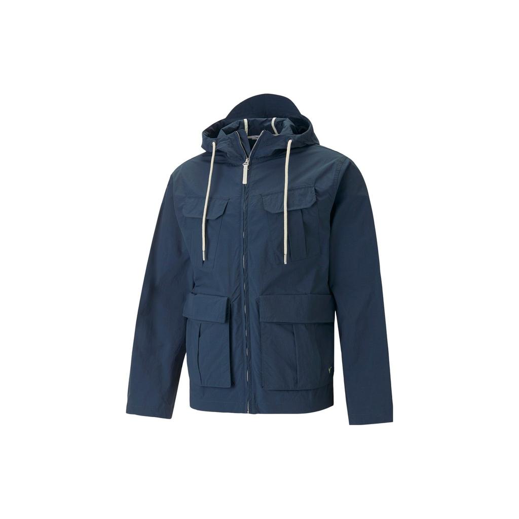 Puma Однотонная повседневная куртка-унисекс с капюшоном и молнией, множеством карманов, темно-синяя 537962-16