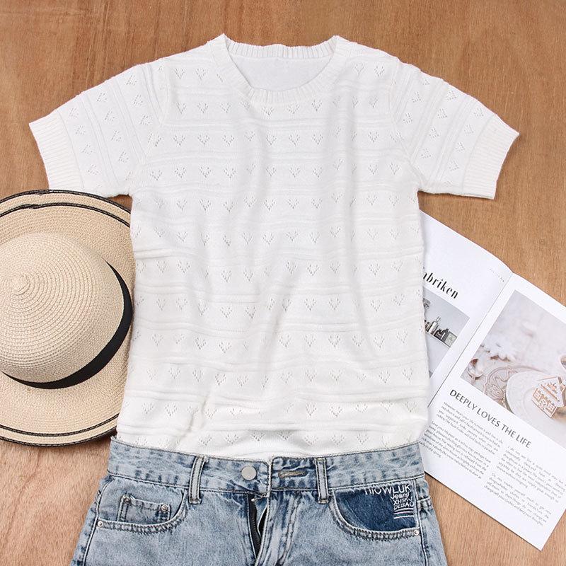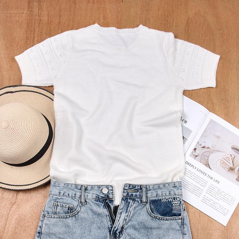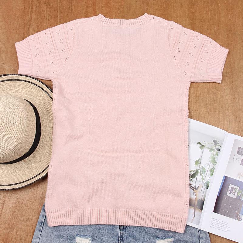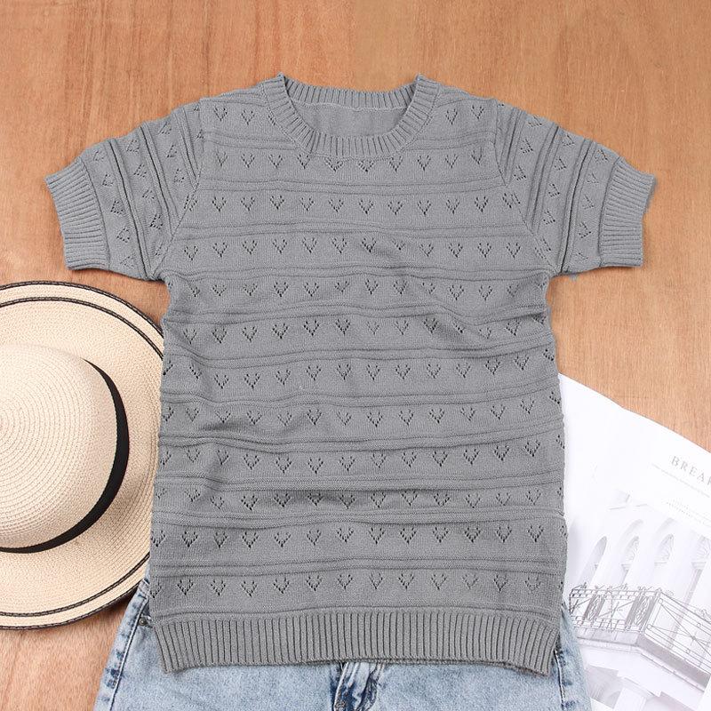 Женский свитер свободного кроя с круглым вырезом и короткими рукавами на осень и зиму