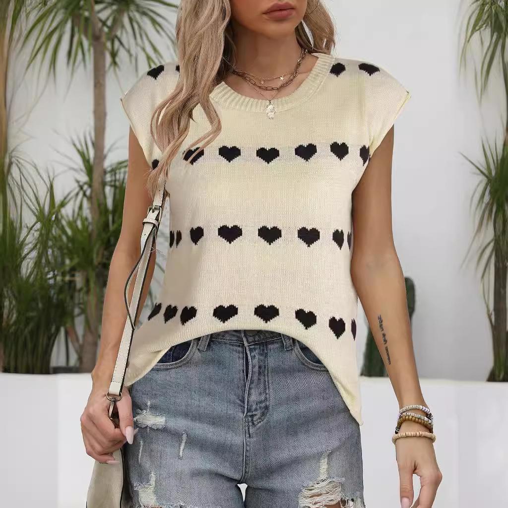 Женский свитер свободного кроя с круглым вырезом и короткими рукавами на осень и зиму