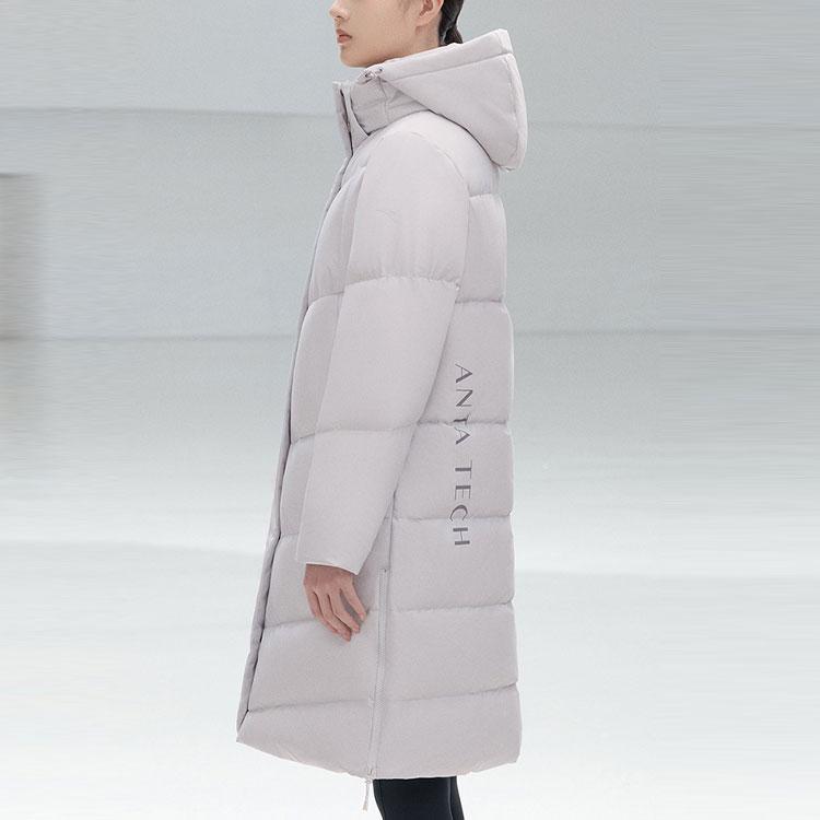 Anta Однотонный пуховик с принтом букв, на молнии, с капюшоном, женская верхняя одежда, серый цвет 962247905-2
