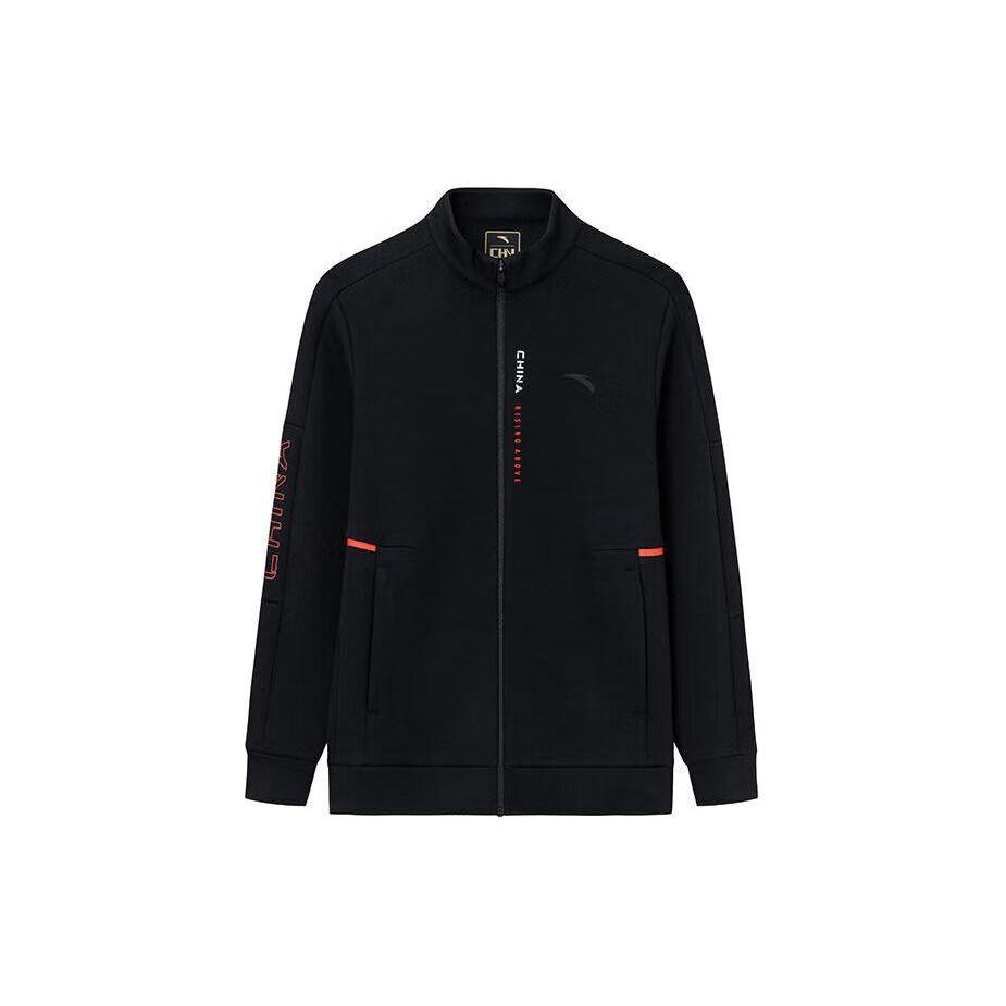 Anta Тренировочная серия с принтом букв и воротником-стойкой для бега и фитнеса, трикотажная мужская куртка Basic-черного цвета 152417745S-4