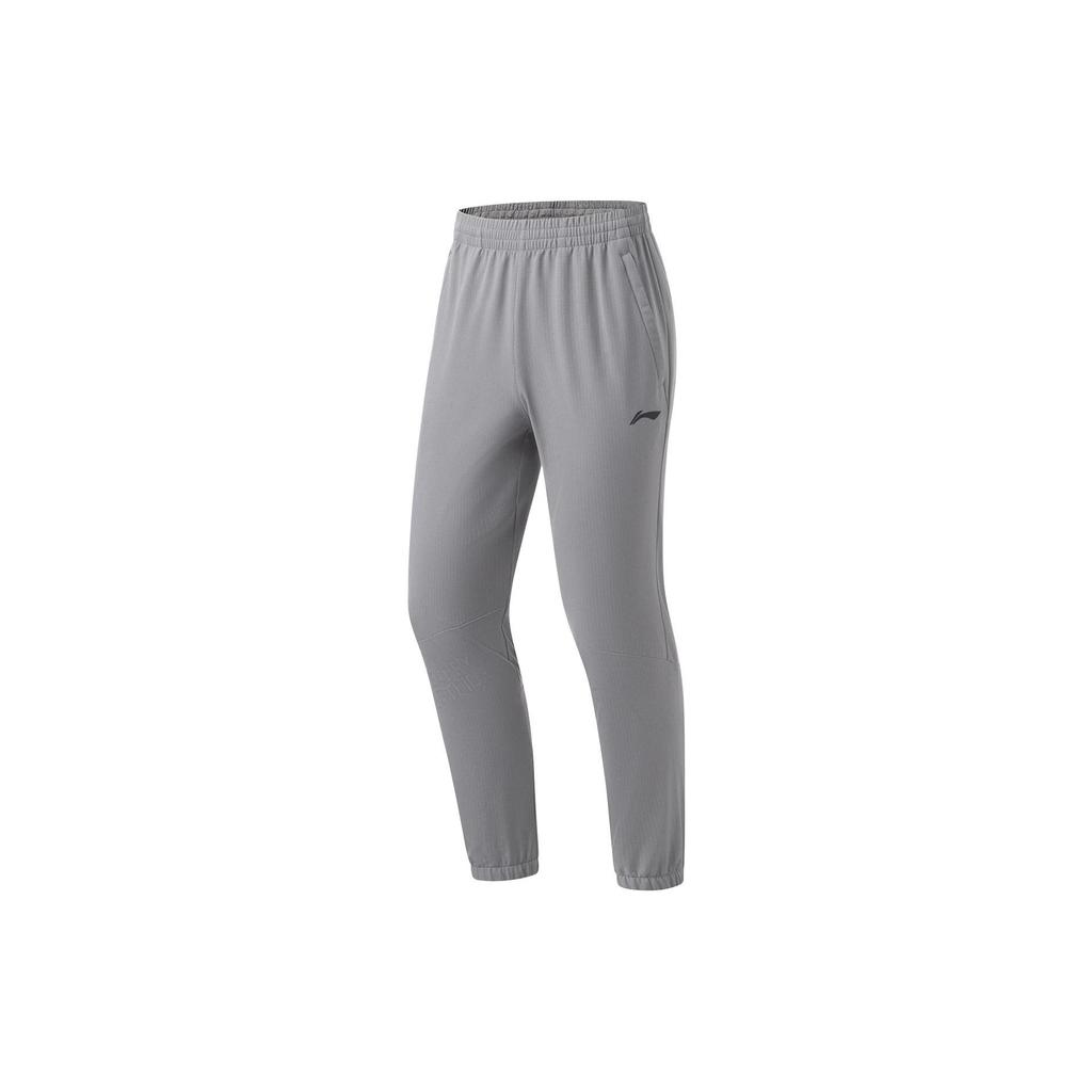 Штаны мужские спортивные Li Ning Running Series однотонные флисовые с манжетами, теплые, цвета акулий серый AYKT049-3