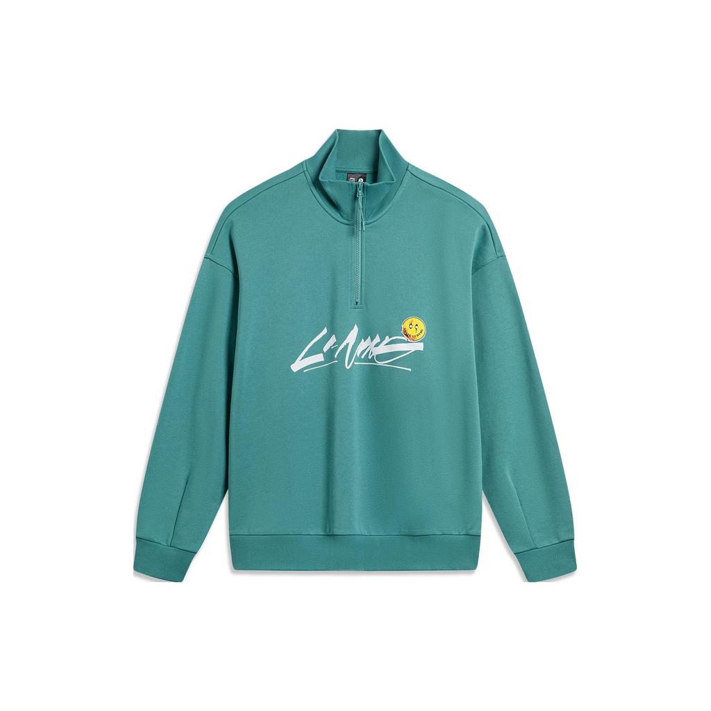 Li Ning X OG Slick Collaboration Letter Stand Collar Pullover Loose Sweatshirt Unisex sweatshirt Frost-Green AWDT445-5