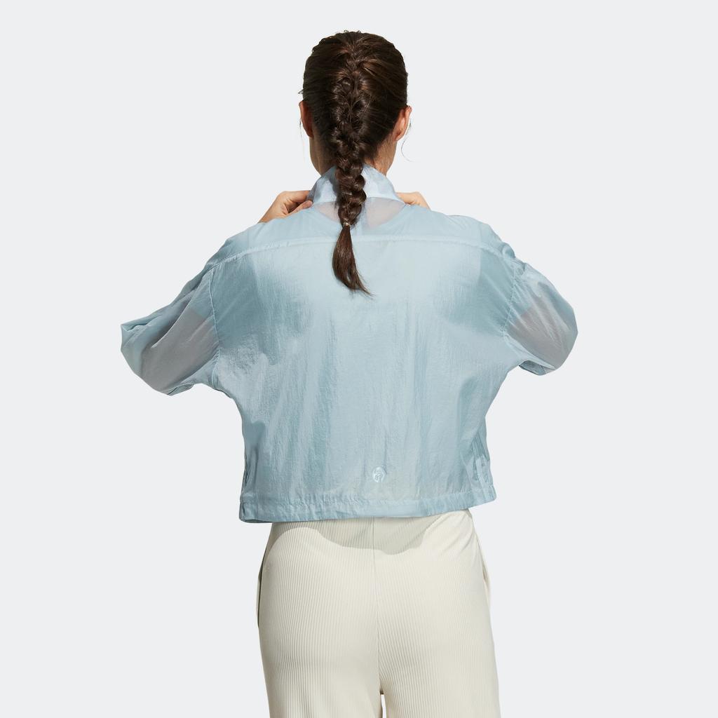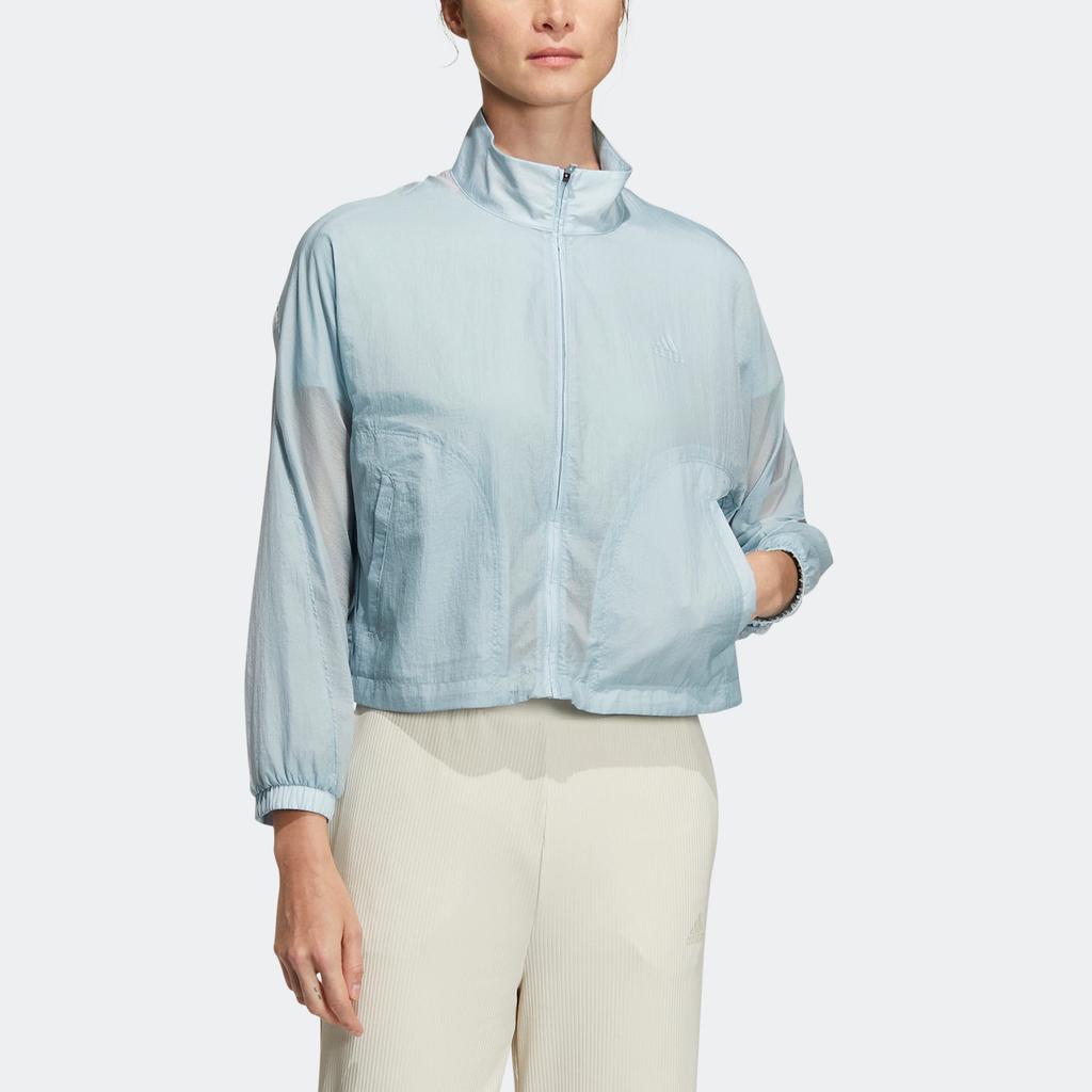 Adidas Wx Wv куртка T2 однотонная с тремя полосками по бокам и воротником-стойкой спортивная куртка женская куртка светло-голубая HR8407