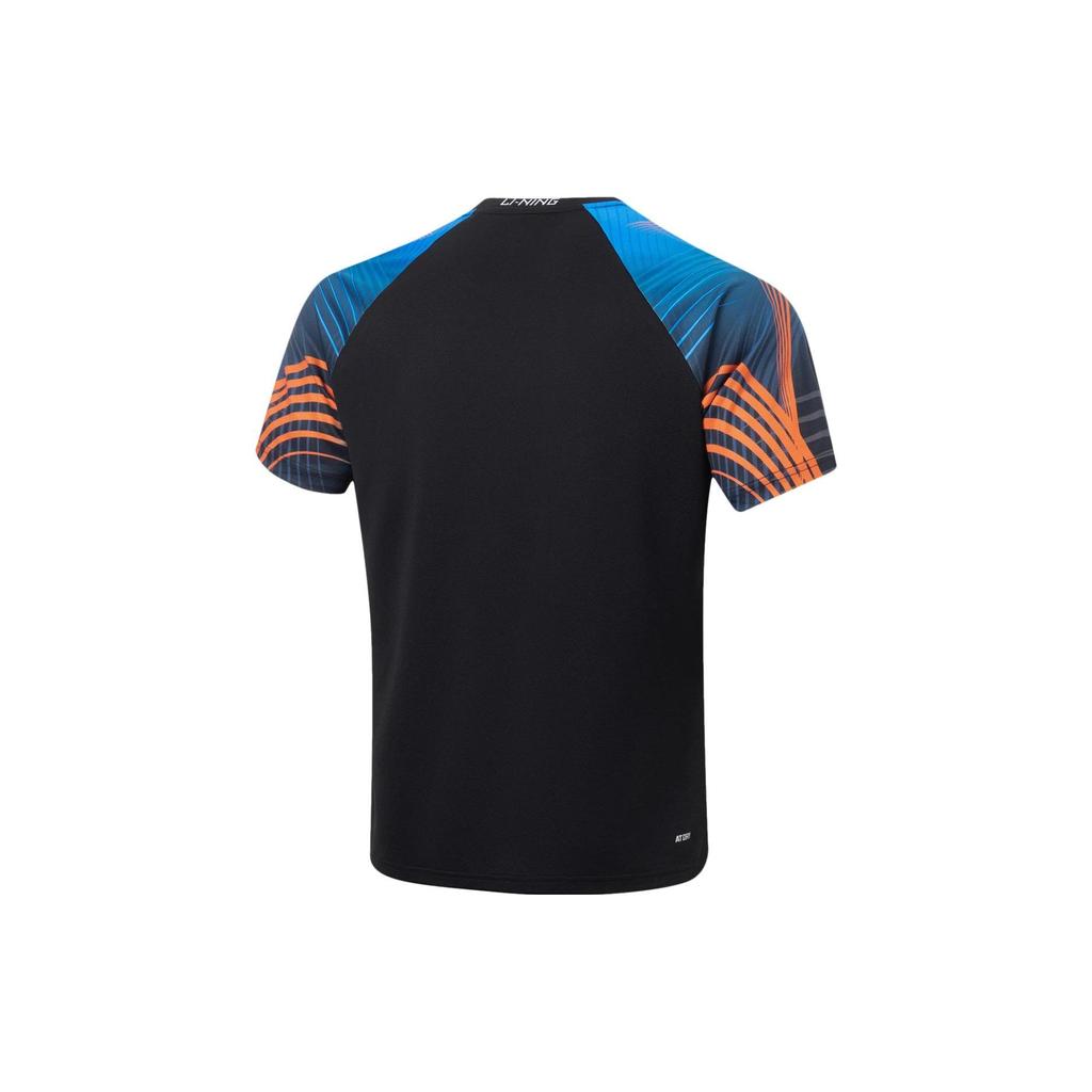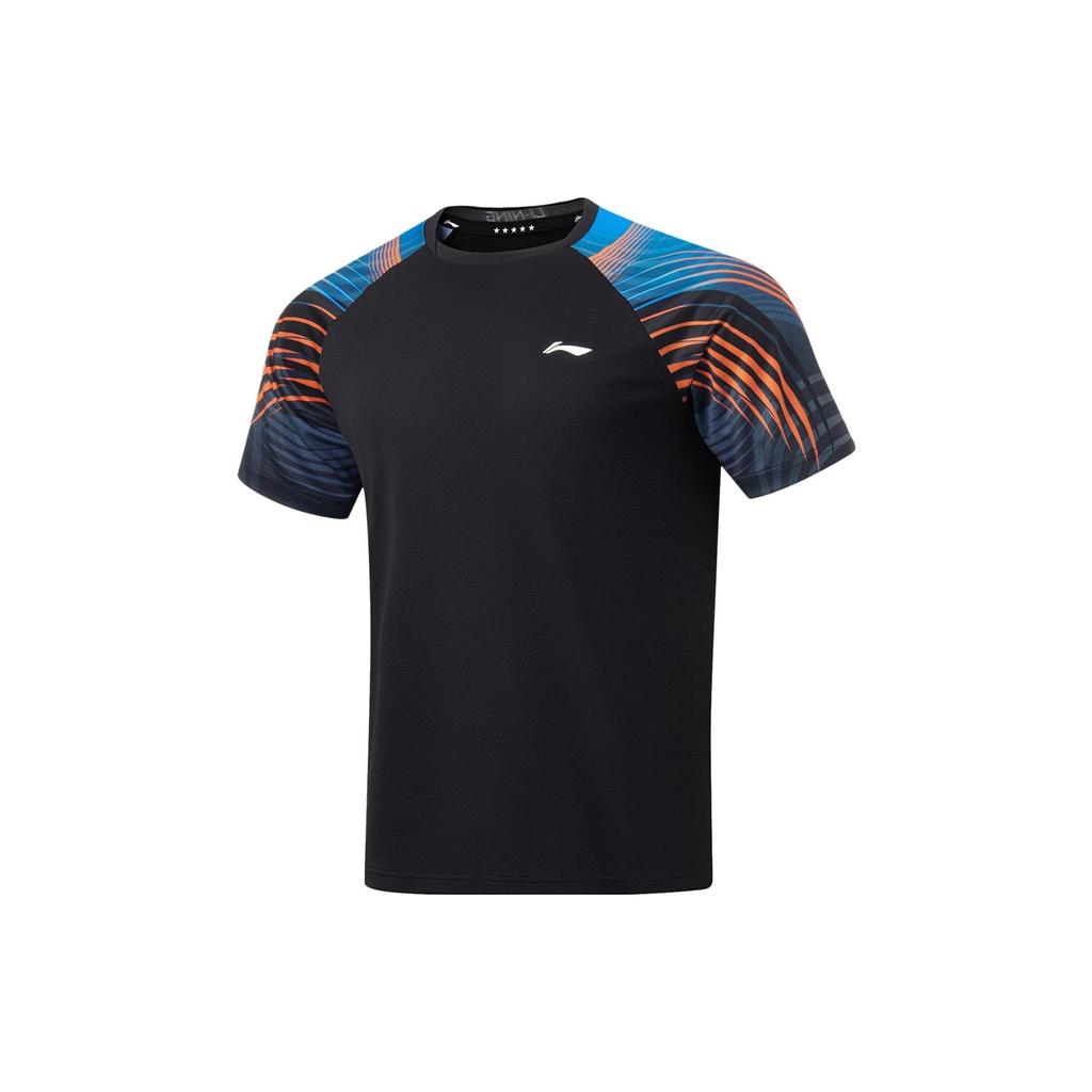 Li-Ning Футболка Color Block Quick Dry Cool Match с коротким рукавом и кроем реглан, топы унисекс, черные AAYT561-1