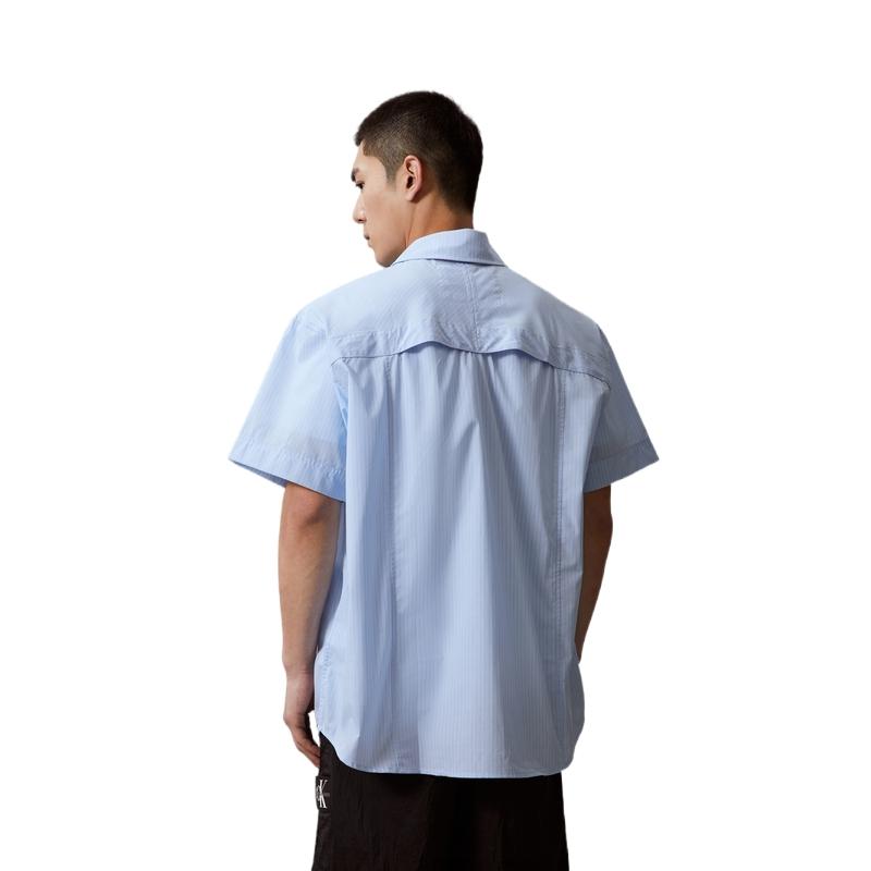 Calvin Klein Рубашка свободного покроя с коротким рукавом в полоску с накладным карманом и надписью Retro Letter Label, мужские рубашки синего цвета J325769