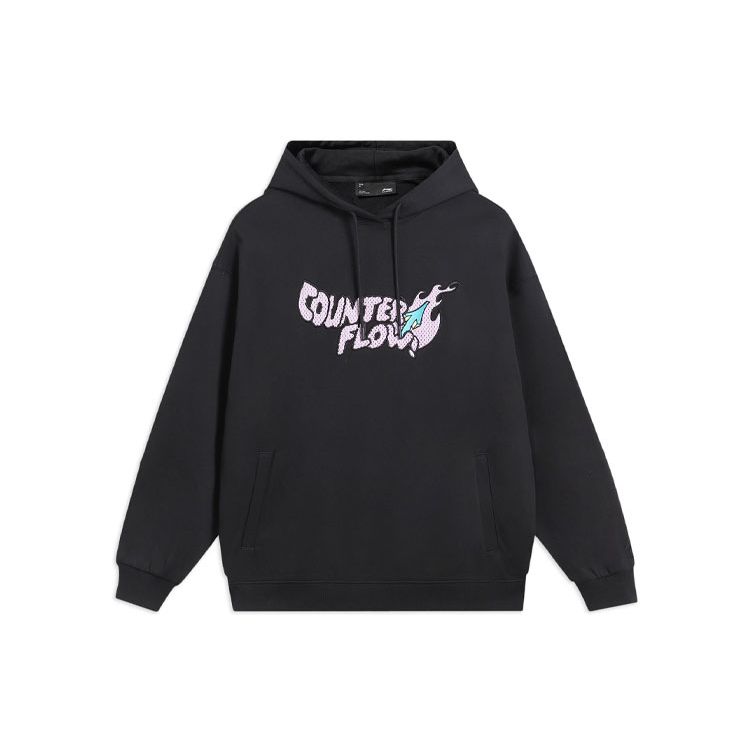 Li Ning Cf Mars Sports Lifestyle Series Letter Print Loose Hoodie Женские толстовки с капюшоном черного цвета AWDSA14-1