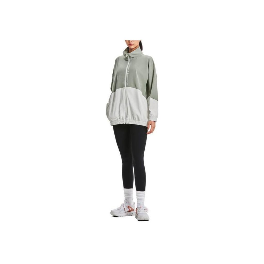 Under Armour Цветные блоки тканые полноразмерные молнии тренировочные ретро спортивные куртки женские куртки зеленые 1369890-504