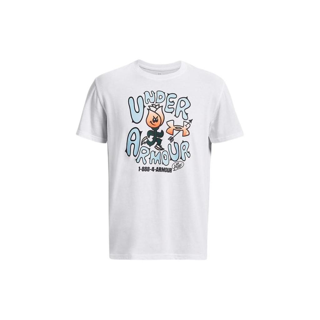 Under Armour Футболка мужская с коротким рукавом и круглым вырезом, с принтом в виде розового пламени и мультяшными буквами, белая 1380916-100