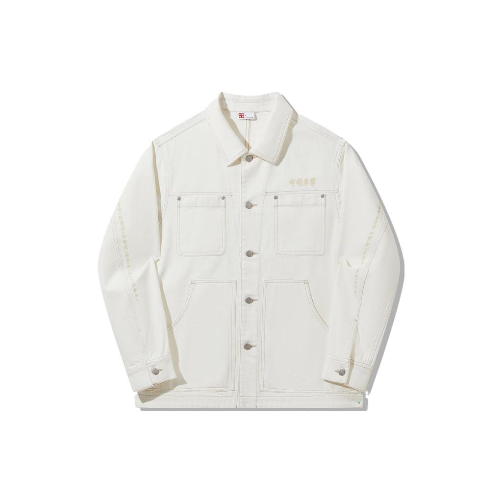 Li Ning Vital Series однобортная джинсовая куртка однотонного цвета, которую можно стирать, куртка унисекс, оттенок белого, выстиранный деним AJDT705-3