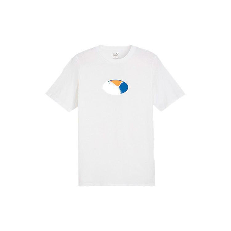 Puma Футболка с логотипом, повседневная, дышащая, с круглым вырезом и коротким рукавом, американская винтажная, мужская, белая 630859-02