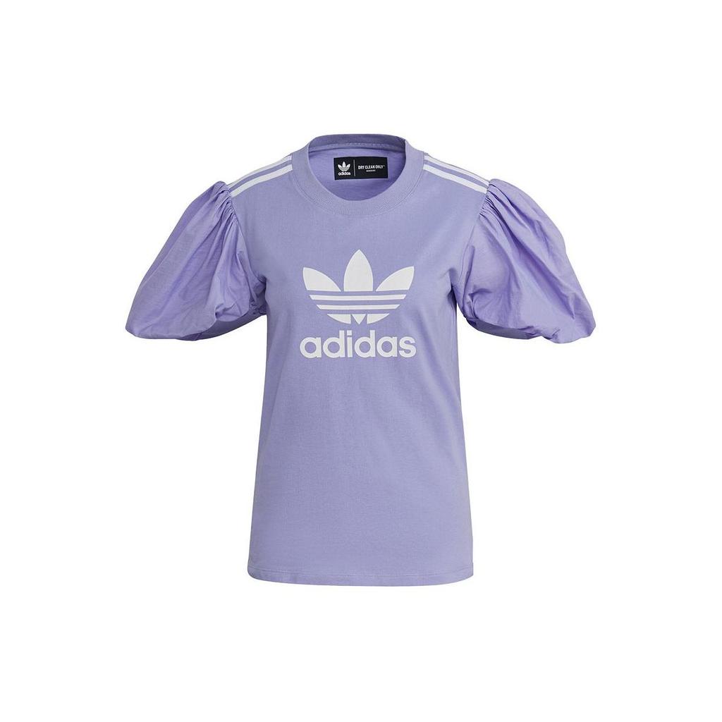 Adidas Originals Три полоски Круглый вырез Пуловер Напечатанный буква Повседневный короткий рукав Фонарь рукав Футболка Женские топы Фиолетовый H59037 — купить товар онлайн с бесплатной доставкой по всему миру!