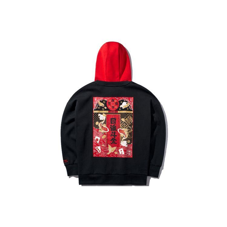 Li Ning New Year Series Prosperity свободный пуловер с капюшоном мужские толстовки черные AWDQ077-1