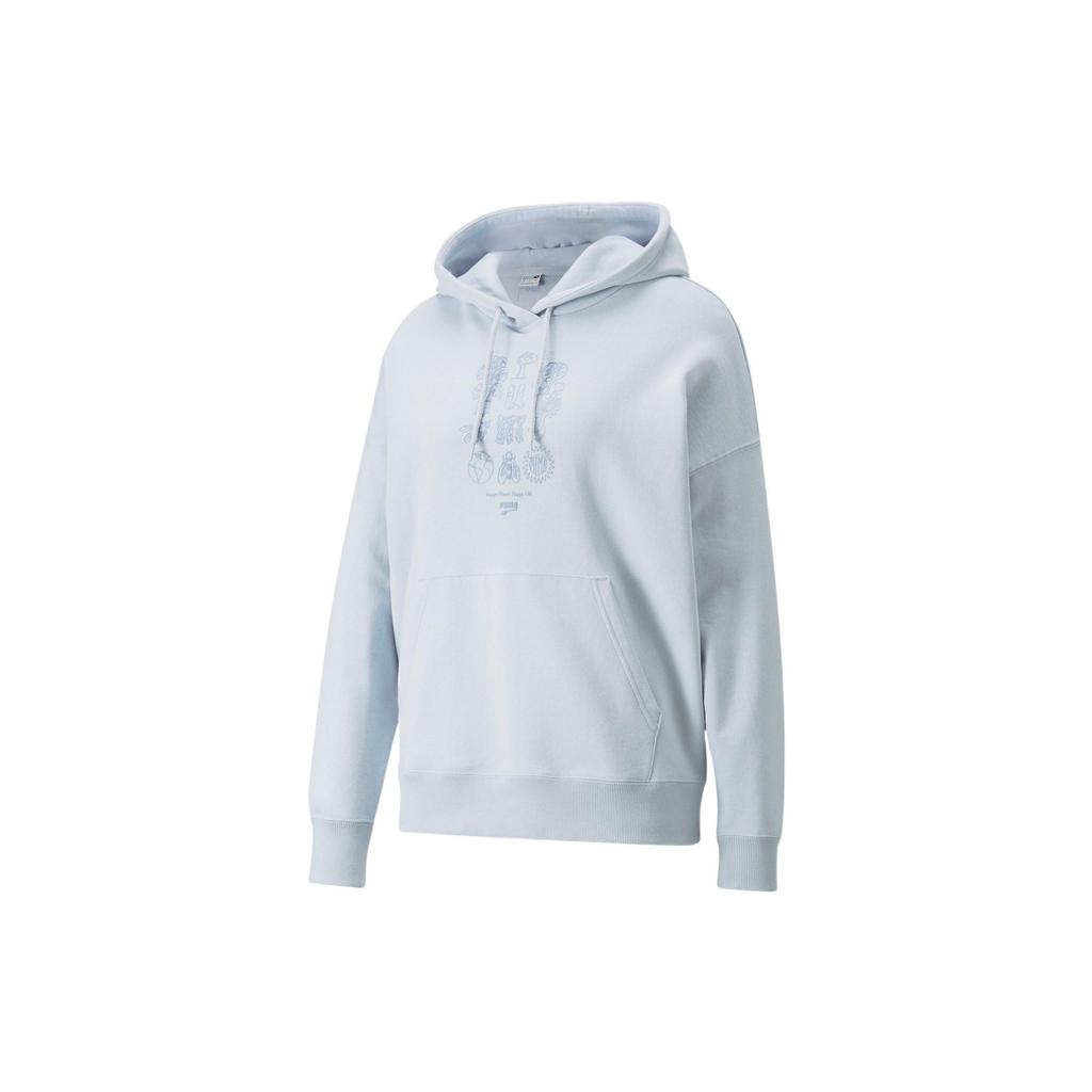 Puma Графический принт, однотонный свитер с капюшоном и длинными рукавами, американская толстовка, женская толстовка, цвет Ice-Blue 535388-21
