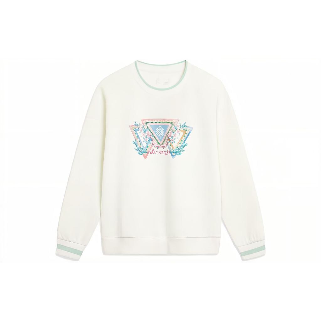 Li Ning Sports Lifestyle Series Геометрический цветочный свободный круглый вырез пуловер свитшот женская толстовка Off-White AWDT374-1 — купить товар онлайн с бесплатной доставкой по всему миру!