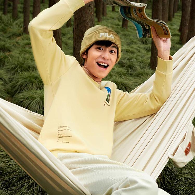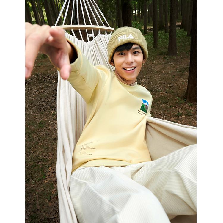 Fila Базовый Простой Буквенный Повседневный Вязаный Пуловер с Длинным Рукавом Мужской свитшот Камень-Желтый F11M248212F-LK