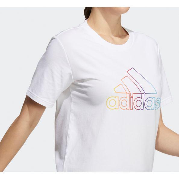 Adidas Футболка W Bos Tee с надписью в спортивном стиле и логотипом, круглым вырезом, коротким рукавом, женская футболка, белая HA3633