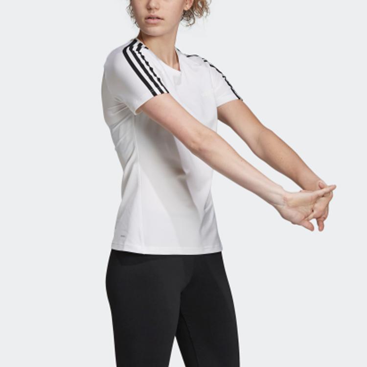 Adidas Футболка для бега, тренировок, фитнеса, с круглым вырезом, с коротким рукавом, женские топы, белые EH8723