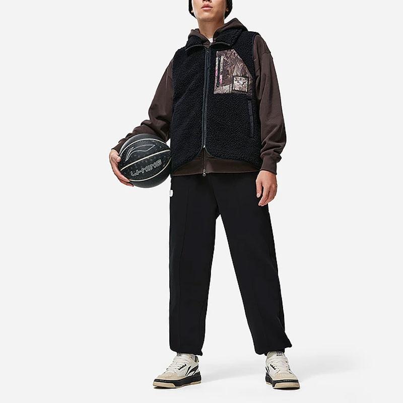 Мужской жилет Li Ning Badfive Color Block Stand Collar из флиса свободного кроя, черный AMDT025-3