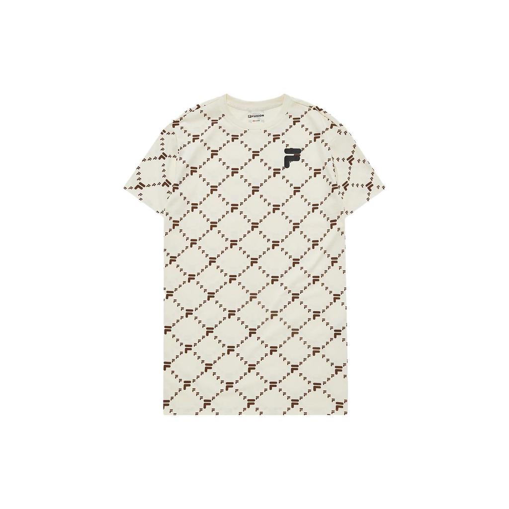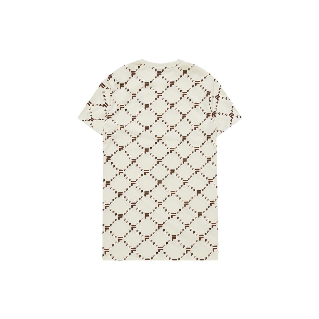 Fila Трендовое платье оверсайз в клетку с круглым вырезом и короткими рукавами для женщин, антично-белое T11W226308D-IV