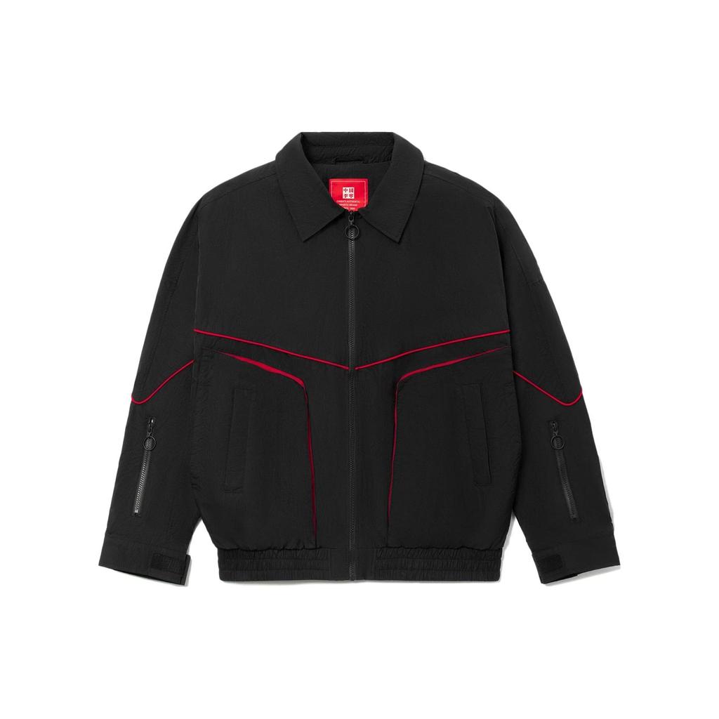 Мужская куртка Li Ning Sports Lifestyle Series с однотонным карманом и воротником-поло с длинным рукавом, черная AJDR449-3