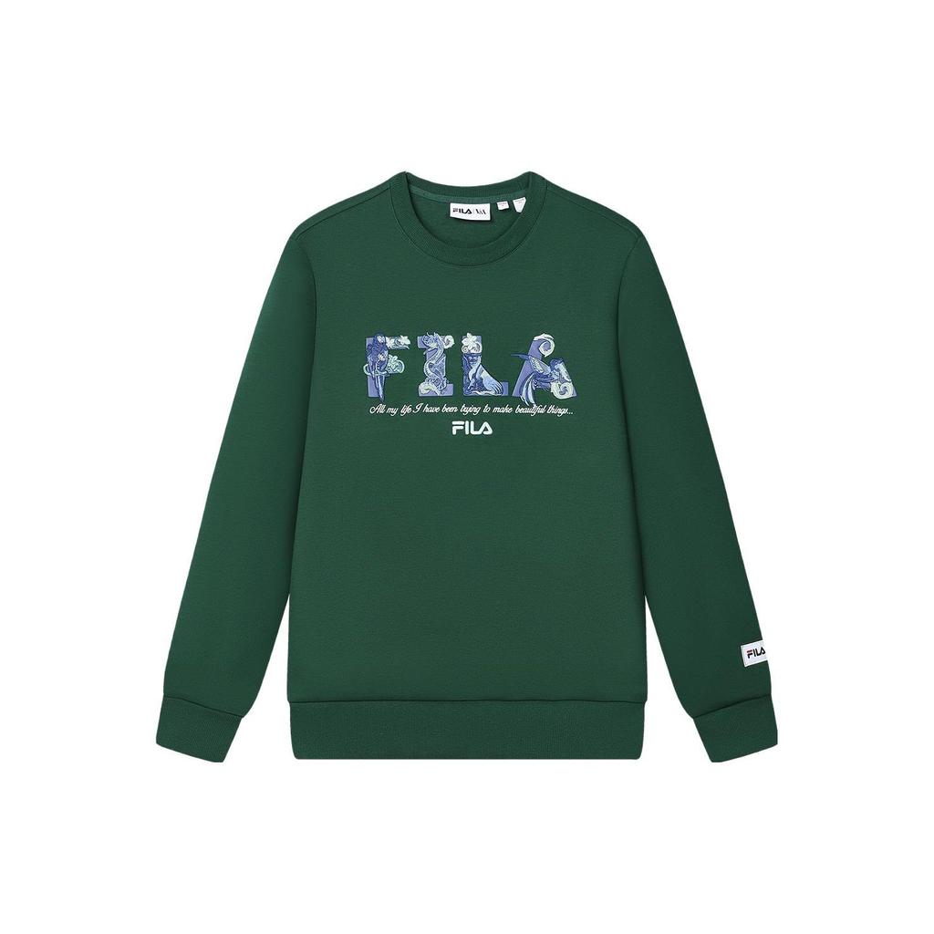 FILA X V&A Collaboration Morgan Series Floral Bird Pattern Crewneck Pullover American Casual Knit Sweatshirt Men sweatshirt F11M418201F-DG — купить товар онлайн с бесплатной доставкой по всему миру!