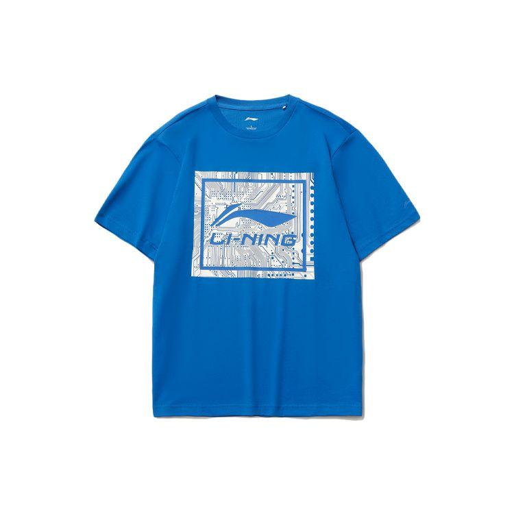 Li-Ning Футболка мужская спортивная модная с логотипом и круглым вырезом, цвет синий AHSR339-3