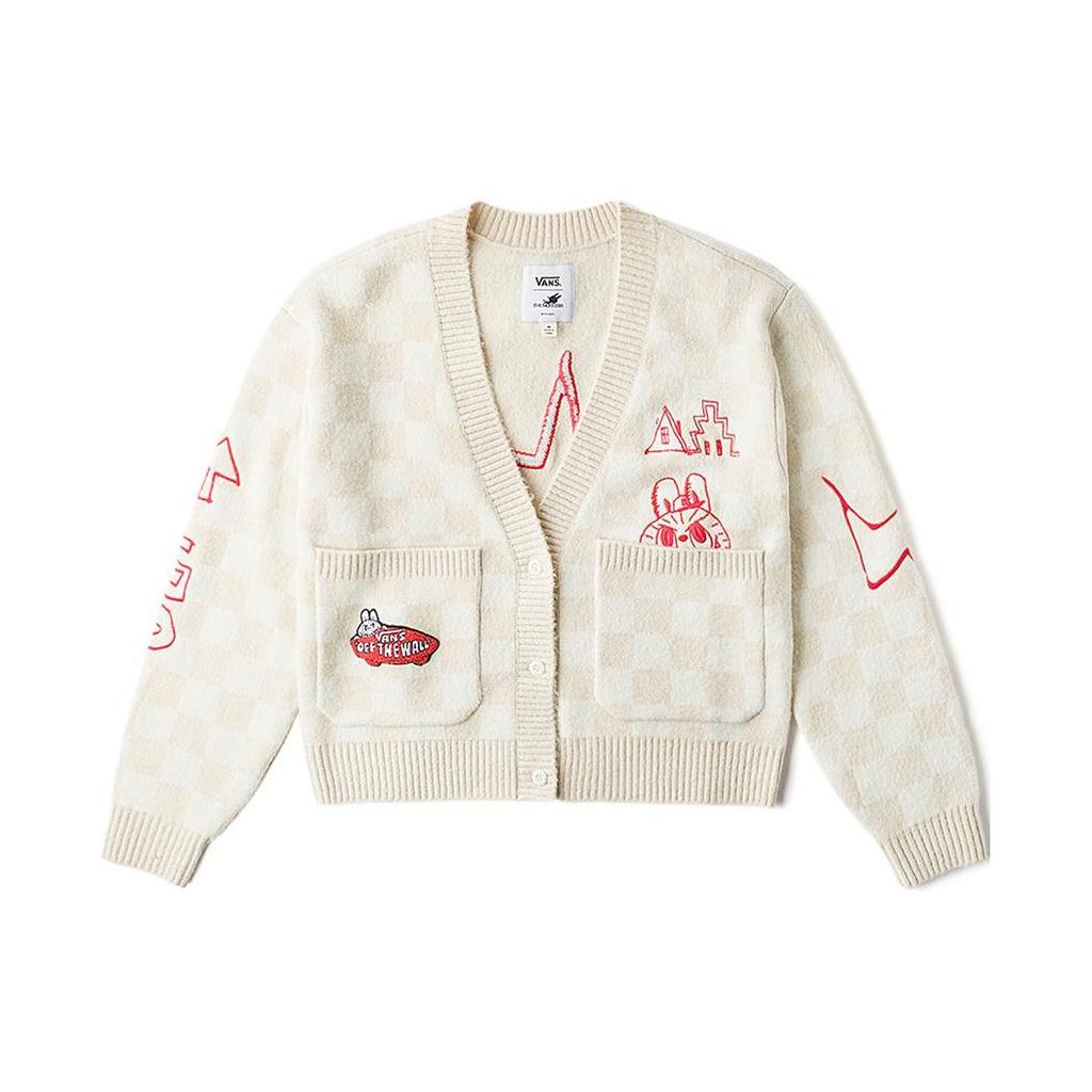 Vans X The Monsters Collaboration Labubu Letter однобортный повседневный вязаный свитер с длинным рукавом женский свитер бежевый клетчатый VN000JFEDHI