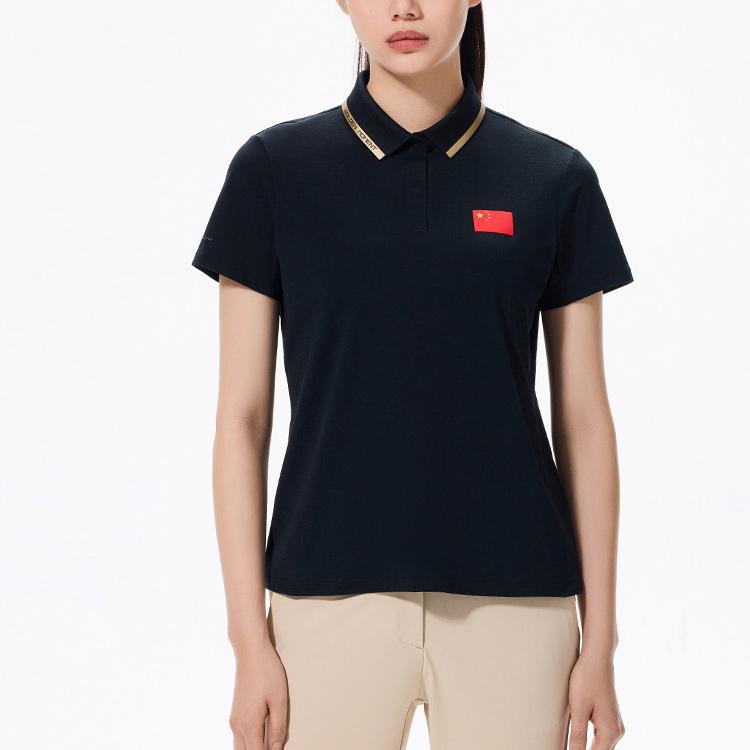 Anta Футболка-поло с коротким рукавом и надписью Champion Series Letter Flag, женские топы Night-Sea-Black 162320118-5