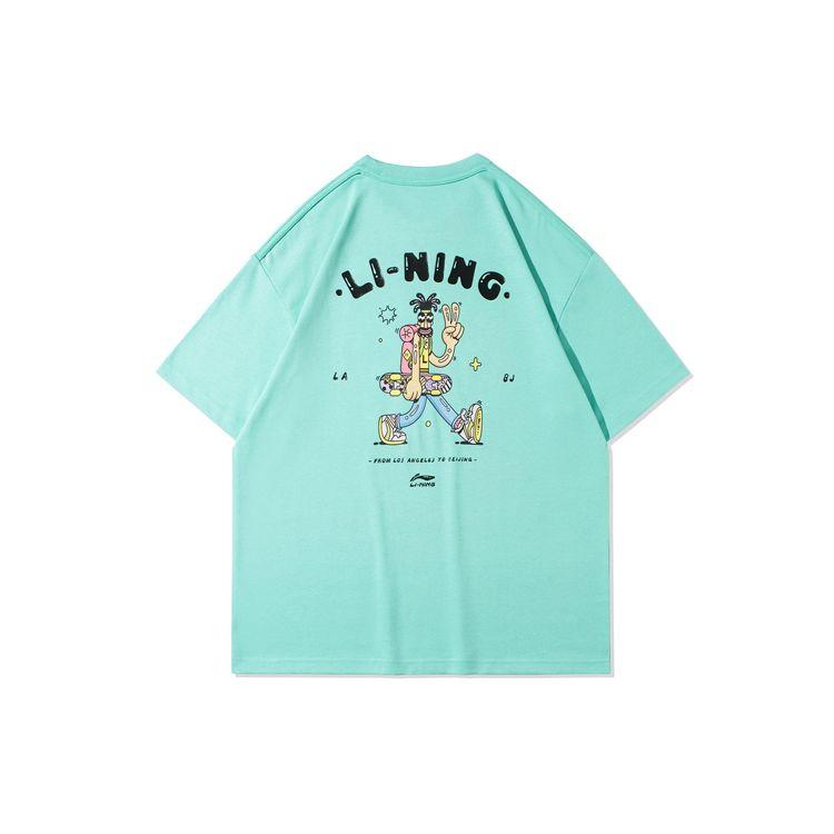 Футболка свободного кроя с коротким рукавом и круглым вырезом Li Ning Cartoon Print, мужские топы светло-нефритово-зеленого цвета AHSR937-1