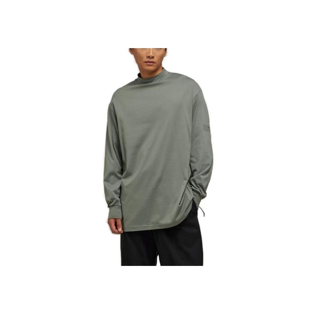 Y-3 FW23 Однотонная футболка с высоким воротом и заниженной линией плеч, длинный рукав, унисекс, топы, зеленый цвет IP7705