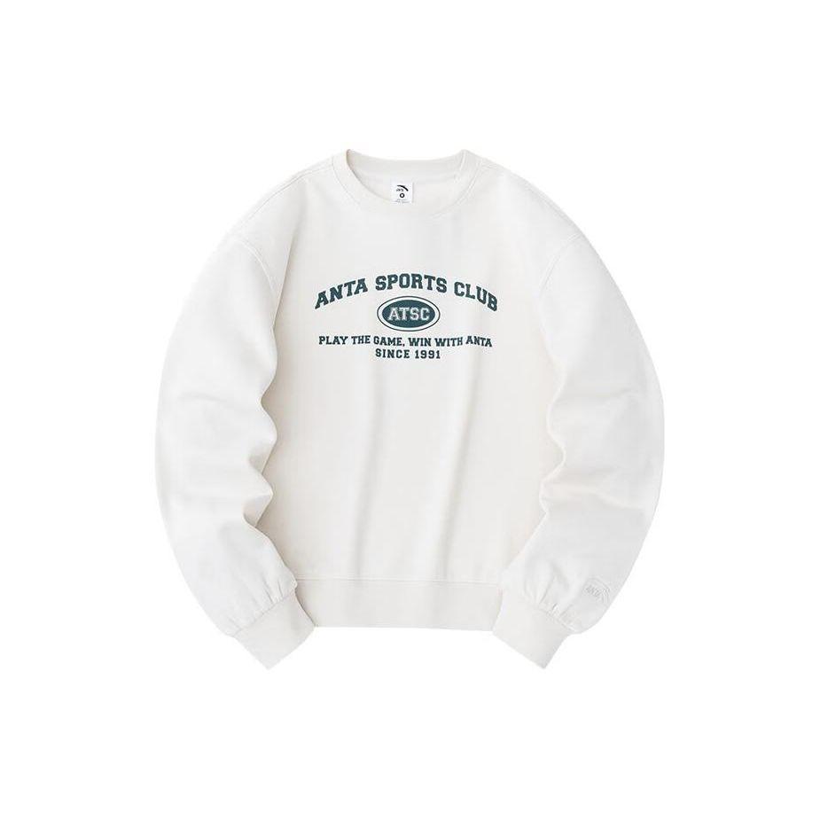 Anta Lifestyle Series Letter Круглый вырез свитера Свободный флисовый свитшот Женская толстовка Stone-White 162348706-1