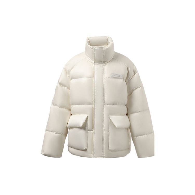 Li Ning Training Series однотонный блестящий воротник-стойка теплый пуховик зимняя женская верхняя одежда белый AYMR372-1