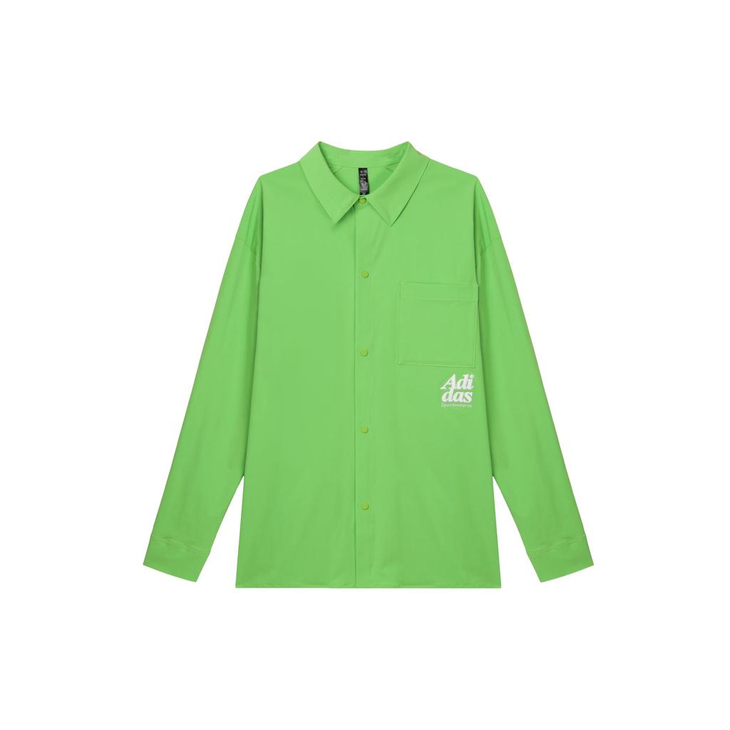 Adidas Рубашка с небольшим логотипом, однотонная, защита от солнца UPF50+, повседневная спортивная рубашка с длинным рукавом, мужские рубашки цвета лайм-зеленый JP2595