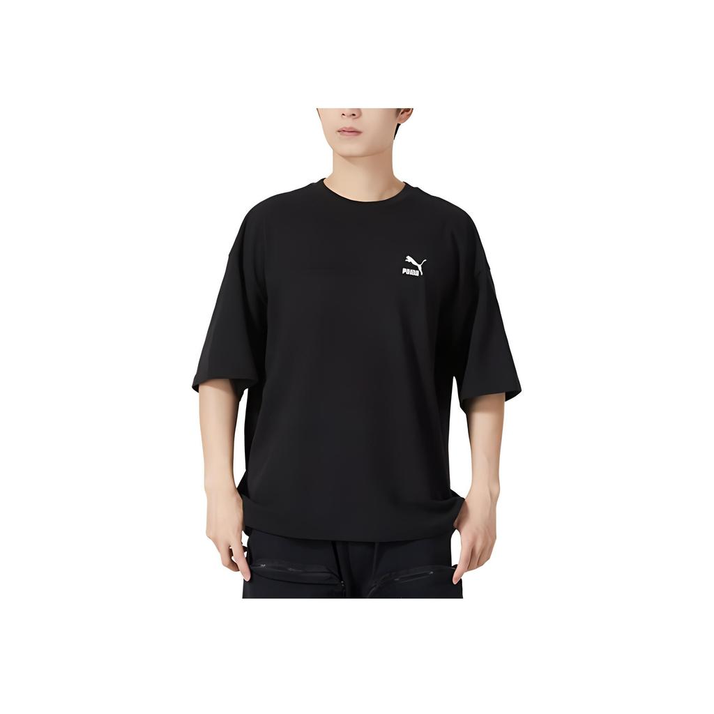 Puma Футболка с коротким рукавом и принтом логотипа, дышащая, повседневная, с круглым вырезом, мужская, черная 624677-01