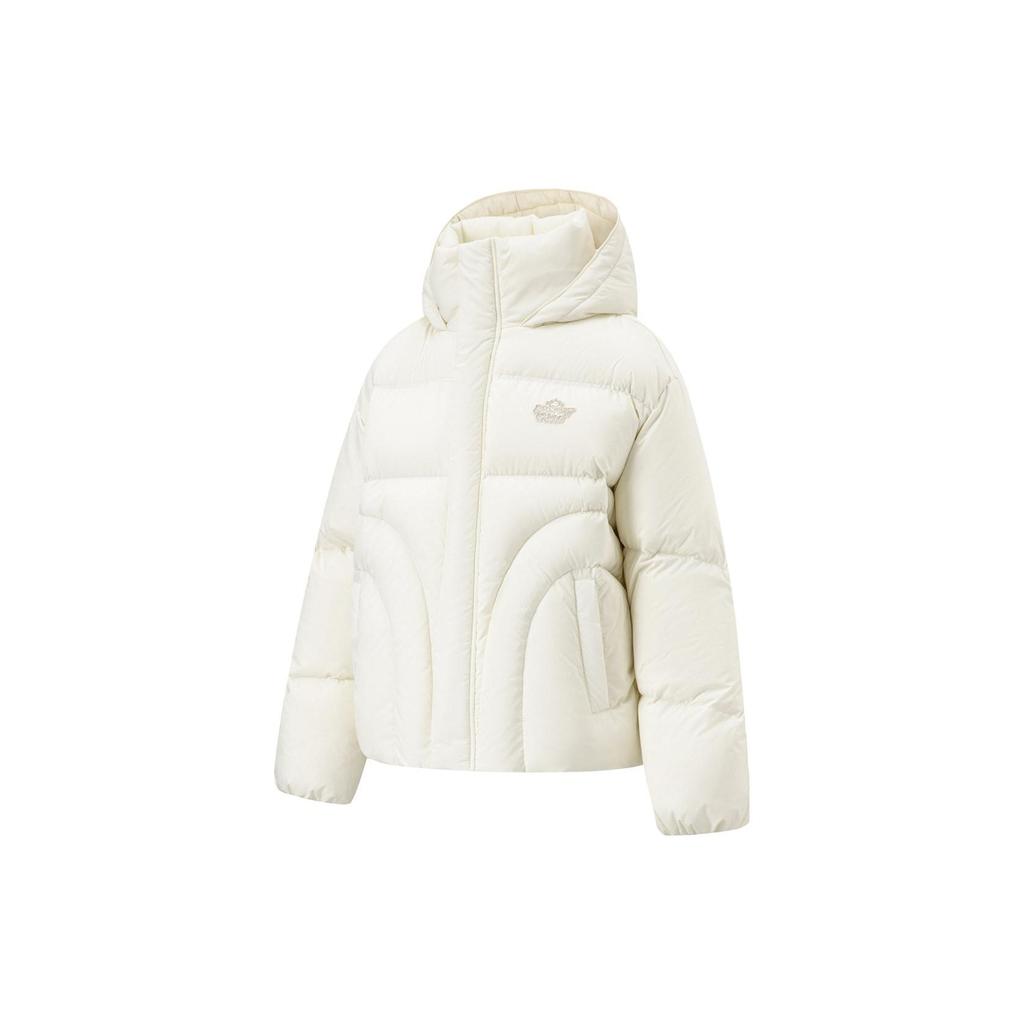 Li Ning однотонная повседневная короткая пуховая куртка на молнии с капюшоном унисекс куртки цвета «белый» AYMT419-3