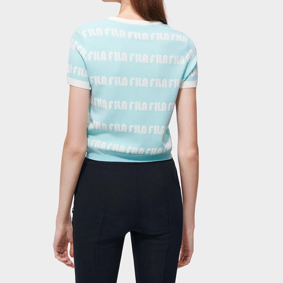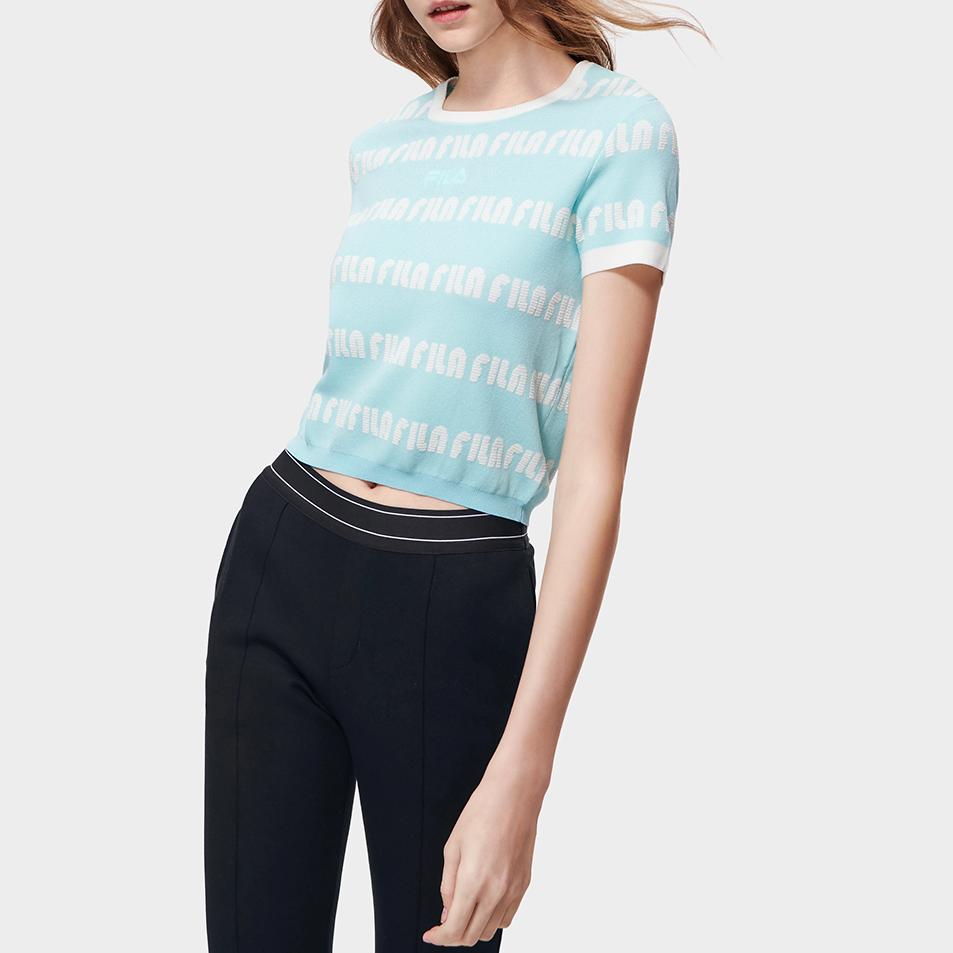 Fila Женская футболка с коротким рукавом и круглым вырезом, с принтом логотипа по всей поверхности, светло-зеленая F11W319404F-TQ