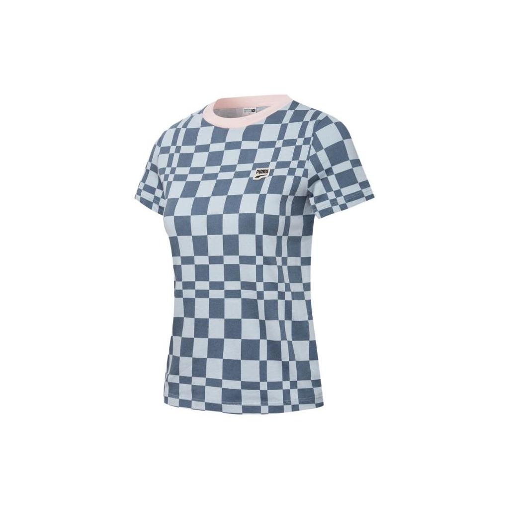 Puma Клетчатая круглая горловина прямого кроя тренировочная спортивная дышащая повседневная футболка с коротким рукавом женские топы синяя 533046-61