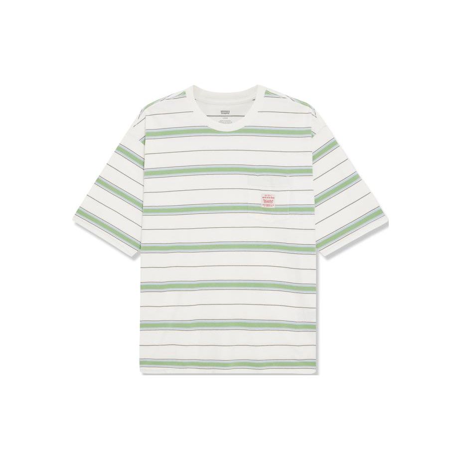 Мужская футболка с коротким рукавом и круглым вырезом в полоску Levis Белый Зеленый A5850-0008
